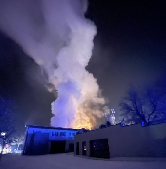 Zusätzlich unterstützten wir die eingesetzten Feuerwehren bei der Brandbekämpfung von außen sowie bei allgemeinen Löscharbeiten. Durch das koordinierte Vorgehen aller eingesetzten Kräfte konnte der Brand unter Kontrolle gebracht und ein Übergreifen auf weitere Gebäudeteile verhindert werden.
